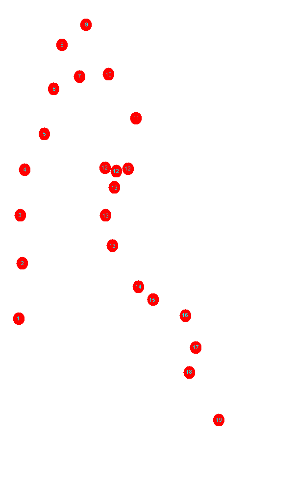 You start at (1), swim to (2) and talk to the dolphin there, he will tell you to find his brother who is playing with his turtle, jump over the wall of the pond at (3) to get to the pond on the other side. At (4) you will find a turtle being attacked by sharks, kill all the sharks in the area and a dolphin will swim up to you and give you the turtle song, go back to (2) and talk to the dolphin again then go back to (4), the dolphin from (2) will follow you and give you the shark song. Swim to (5), you will find a dolphin there chasing a fast fish, catch the fish and the dolphin will give you the fish song. Now you have two possibilities you can use the dark tunnel (7) or the piranha tunnel (6) to get to the bigs sharks lair. I personally prefer the dark tunnel, to pass the dark tunnel go to (8) and get the glowing fish there to follow you with the fish song, swim through the tunnel starting at (7) to the sharks lair (don't go too fast or the fish won't follow you). At (9) hit the shark with your sonar to make it interested in you, wait until it is close behind you and then swim through one of the holes in the central rock, the shark should get stuck, charge into it's jaws to get the ability to use vigour. Now if you want you can kill the shark using the vigour powerup above the central rock to charge into the shark or you can take the easy way and just exit through passage (10) (you don't need to kill the shark unless you really want to), from the other side of the passage swim past (2), (4), (5) to reach (11), get the vigour power up from behind the rock and quickly swim to (12) and charge past the glowing point into the small passage behind it to exit the level. (Note# the section behind (13) is not accessible from this level, you get to it from a later level in the game.) |
